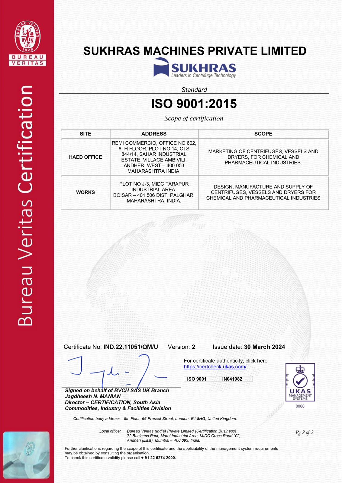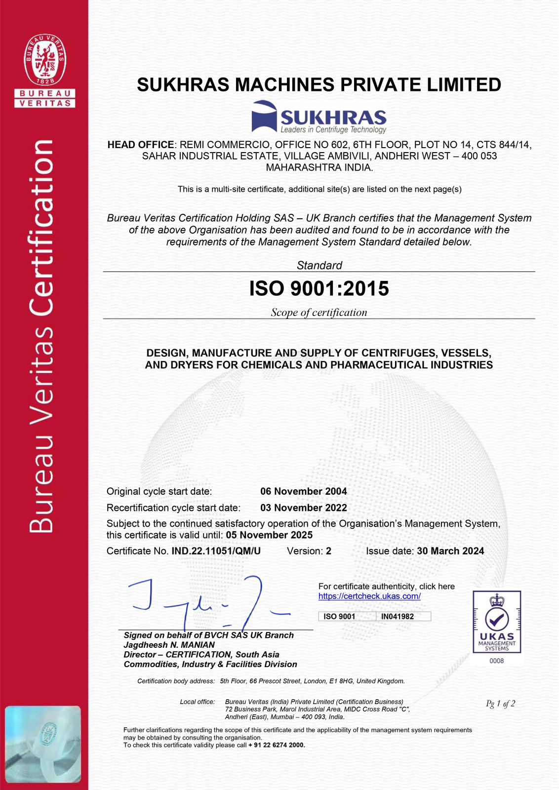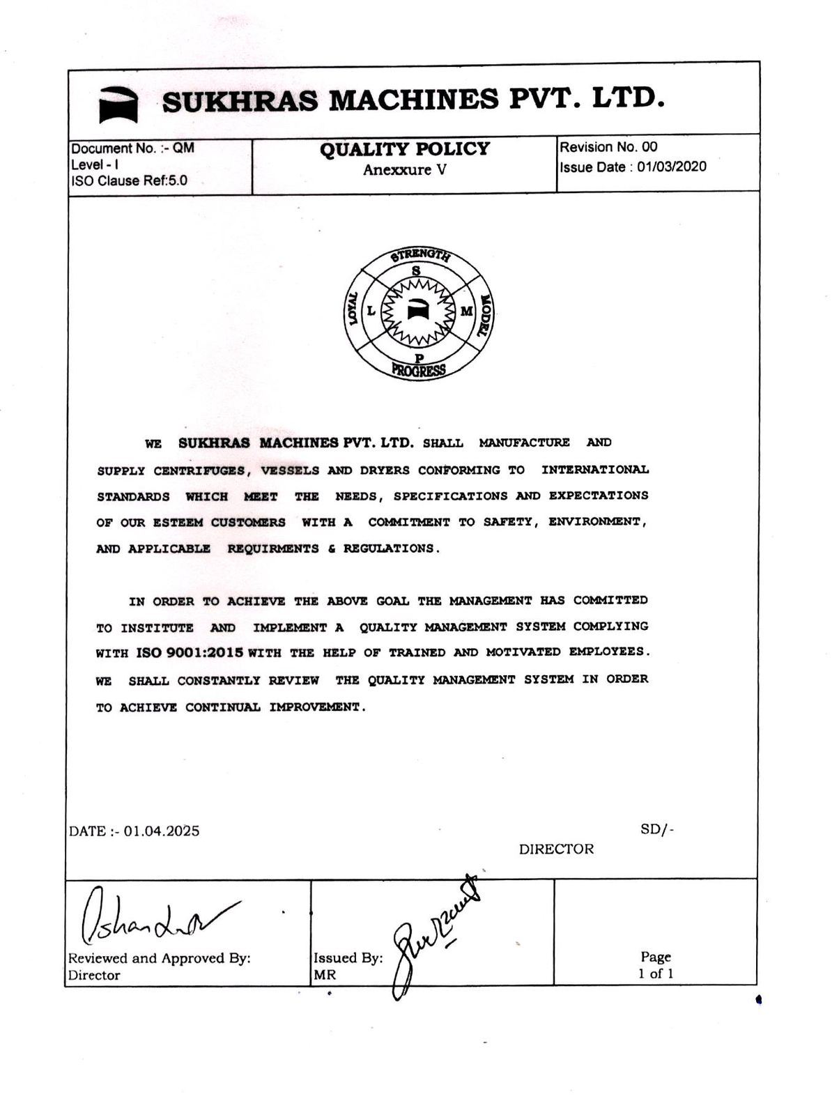 Since our machines find their application in critical industries like Pharmaceutical, Chemical & Food processing industries which require stringent quality standards. We at Sukhras take the responsibility to provide our clients with zero-defect products, by employing various quality control techniques like Six Sigma, TQM etc to eliminate defects & deviations.
